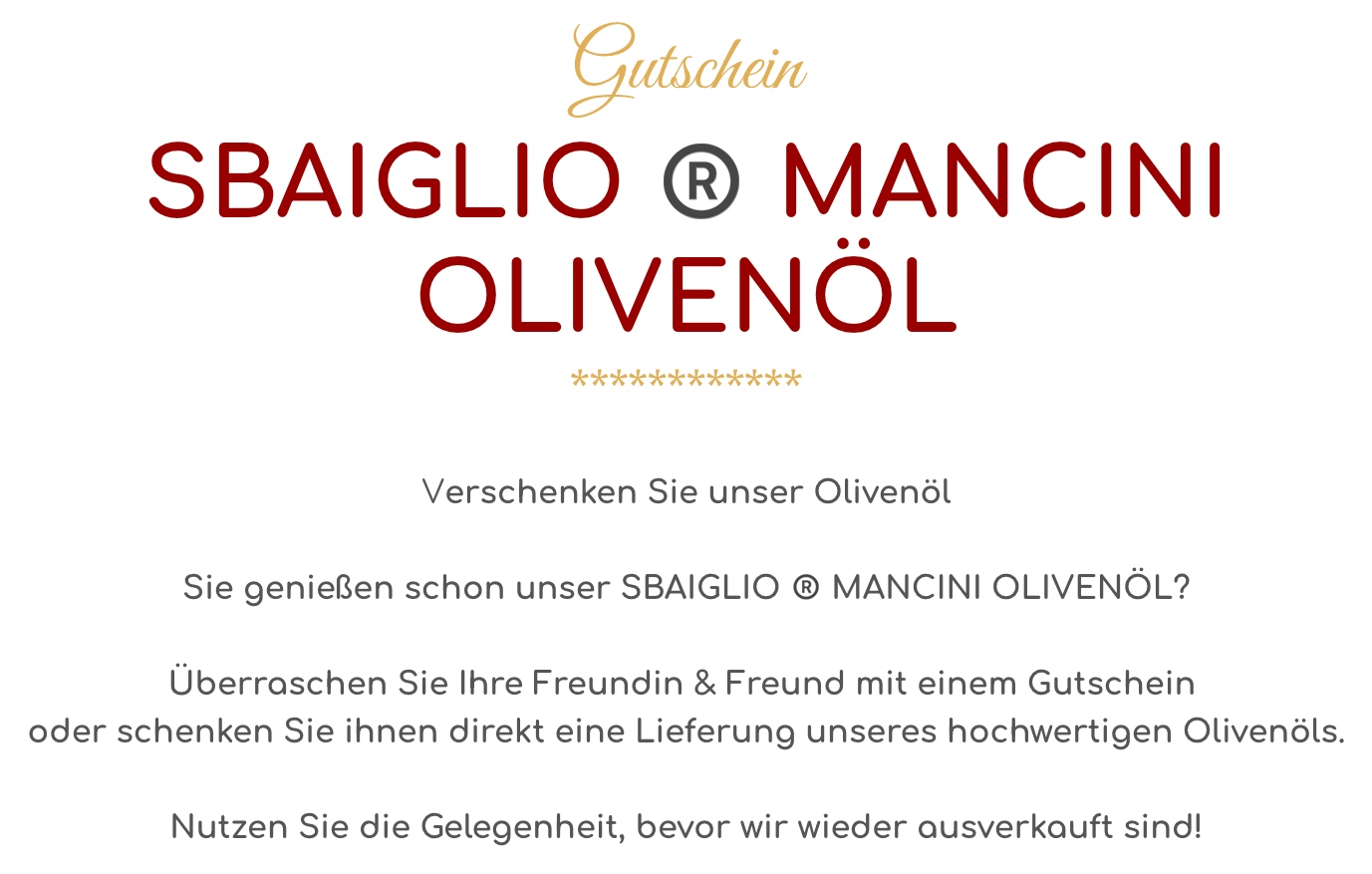 SBAIGLIO ® MANCINI OLIVENÖL produzieren und präsentieren.